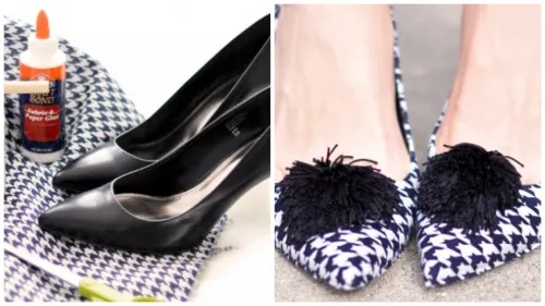 Este estilo te gustará para salir alguna tarde casual. Consiste en forrar por completo el calzado viejo con una tela que te guste. Para rematar, le pones un pompón en algún color que combine bien con la tela elegida.