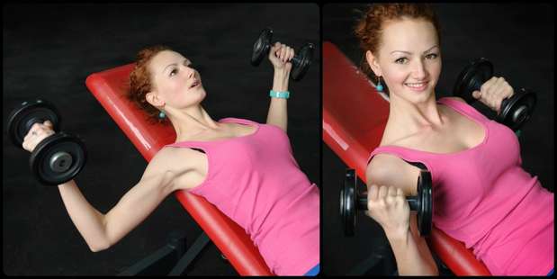Puedes comenzar sin peso o con una pesa pequeña (una botella de agua o llena de arena, por ejemplo). No sólo levantarás los senos, sino que también disfrutarás de más tonicidad y fuerza muscular.