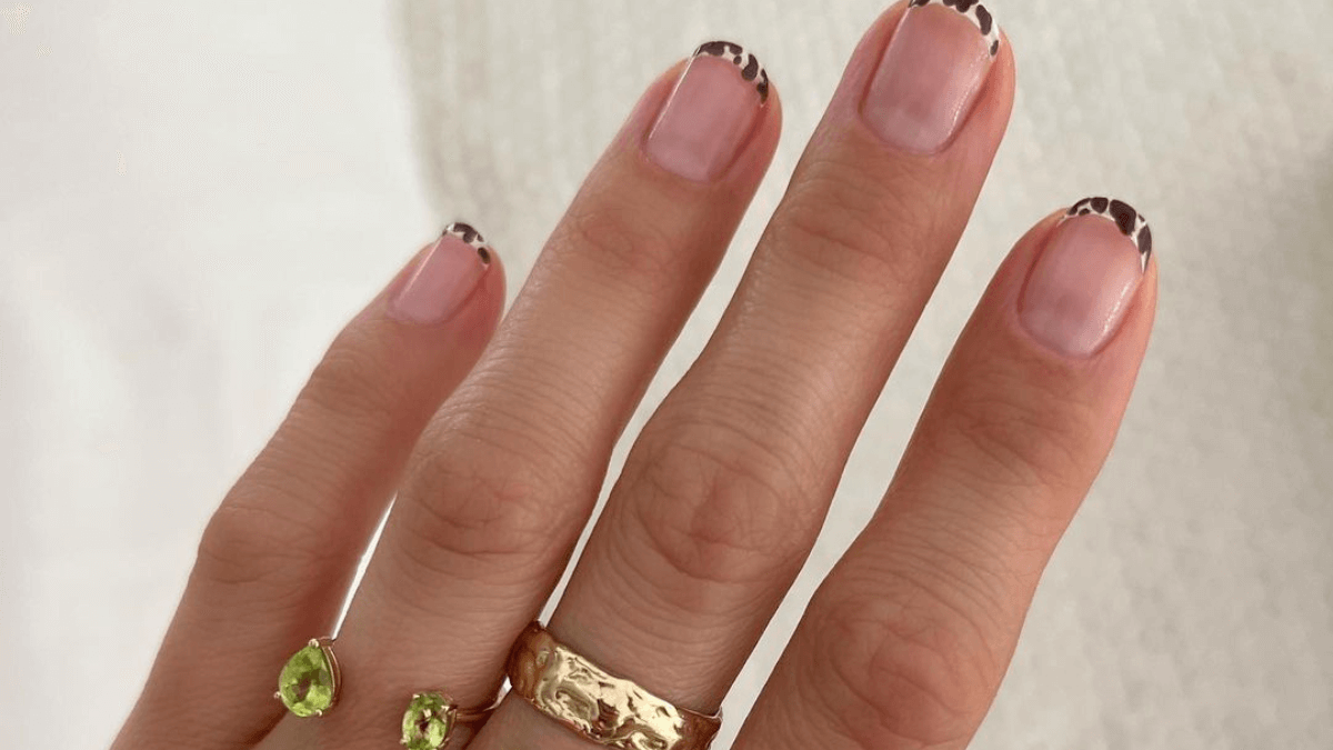 ¿Eres un amante del animal print? Entonces, te encantará esta idea de manicura francesa que te permitirá sumarte a una tendencia en pleno auge durante la primavera-verano. Todo lo que necesitas hacer es aplicar una base nude en tus uñas y reemplazar el clásico blanco de las puntas con un estampado de cebra, leopardo o tigre. ¡Con este estilo lucirás a la moda!