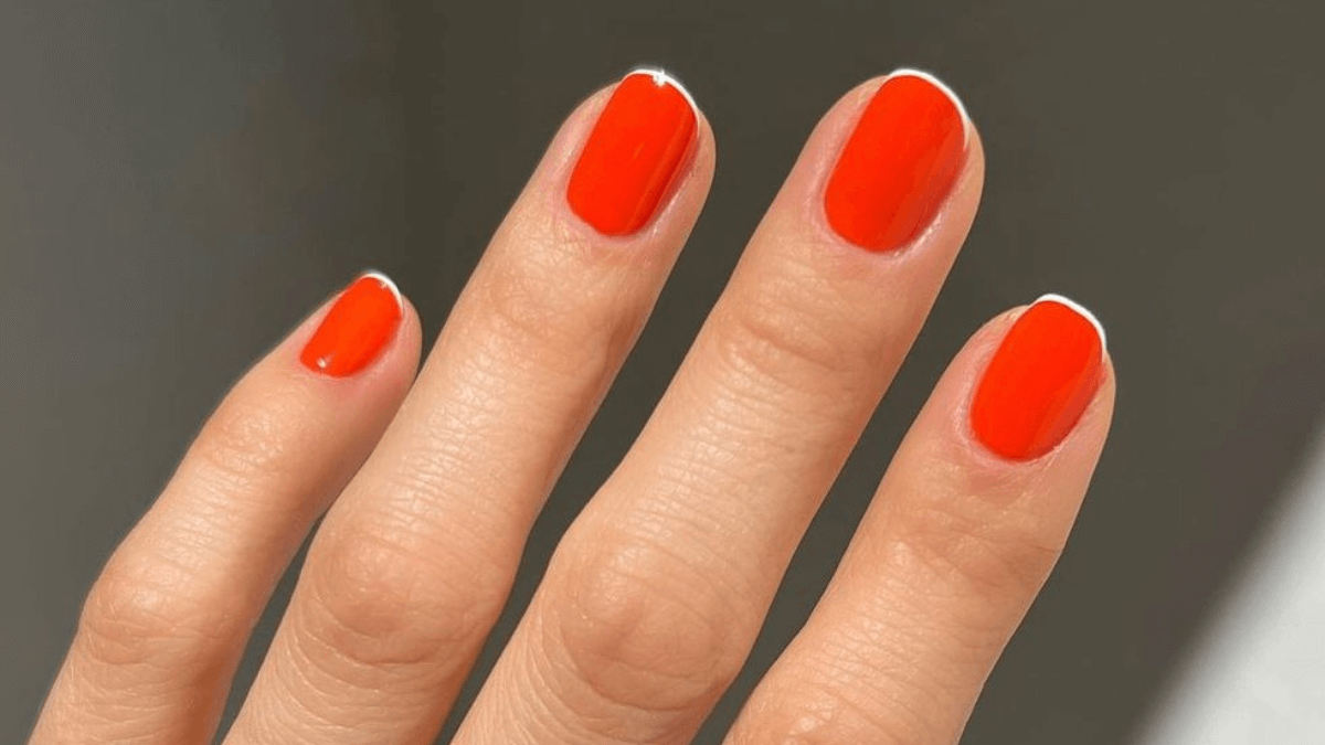 La famosa manicurista de celebridades, Bettina Goldstein, propone este diseño que desafía el tradicional estilo francés de base nude. En esta ocasión, el vibrante tono rojo naranja se adueña de tus uñas para ofrecer un look lleno de personalidad. Así que si buscas una alternativa original para tu manicura, esta es una opción que deberías considerar.