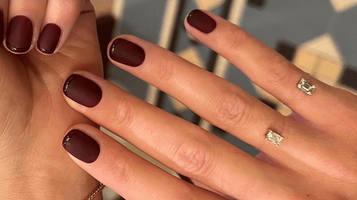 En lugar del tradicional top coat brillante, sella el esmalte con uno de acabado mate para lograr un aspecto limpio y pulido. ¿Te animas a probar esta tendencia? Desde ya, te contamos que, si tienes las uñas cortas y cuadradas, se convertirá en tu favorito.