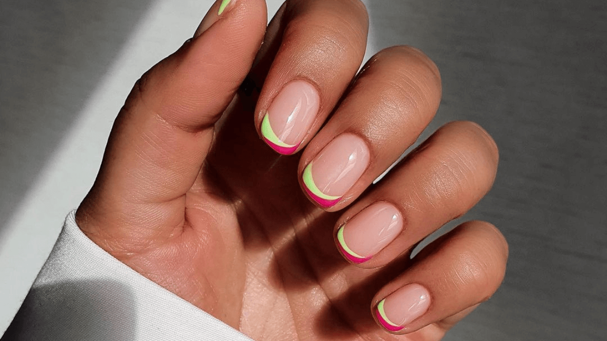 Experimenta con tonos neón y rosa brillante para dar vida a tus puntas durante esta temporada. Al ser tonos complementarios, contrastan de manera adecuada entre sí, creando un efecto llamativo y vibrante.