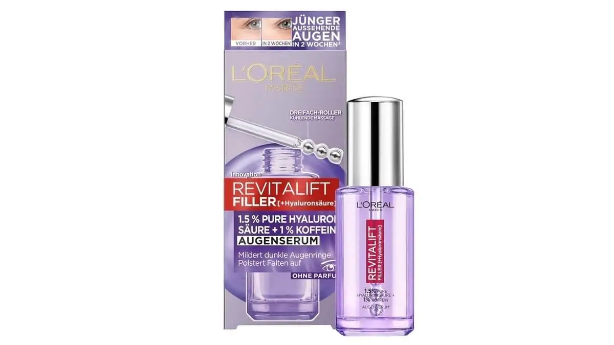 L’Oreal es una de esas marcas que no necesitan presentación, y en particular el sérum Revitalift cuenta con muy buenas opiniones de sus usuarios. Sirve tanto para las arrugas como para las bolsas bajo los ojos, por su combinación de ácido hialurónico y cafeína. También tiene un aplicador con tres bolas de acero, para darte un masaje frío cuando te lo coloques.