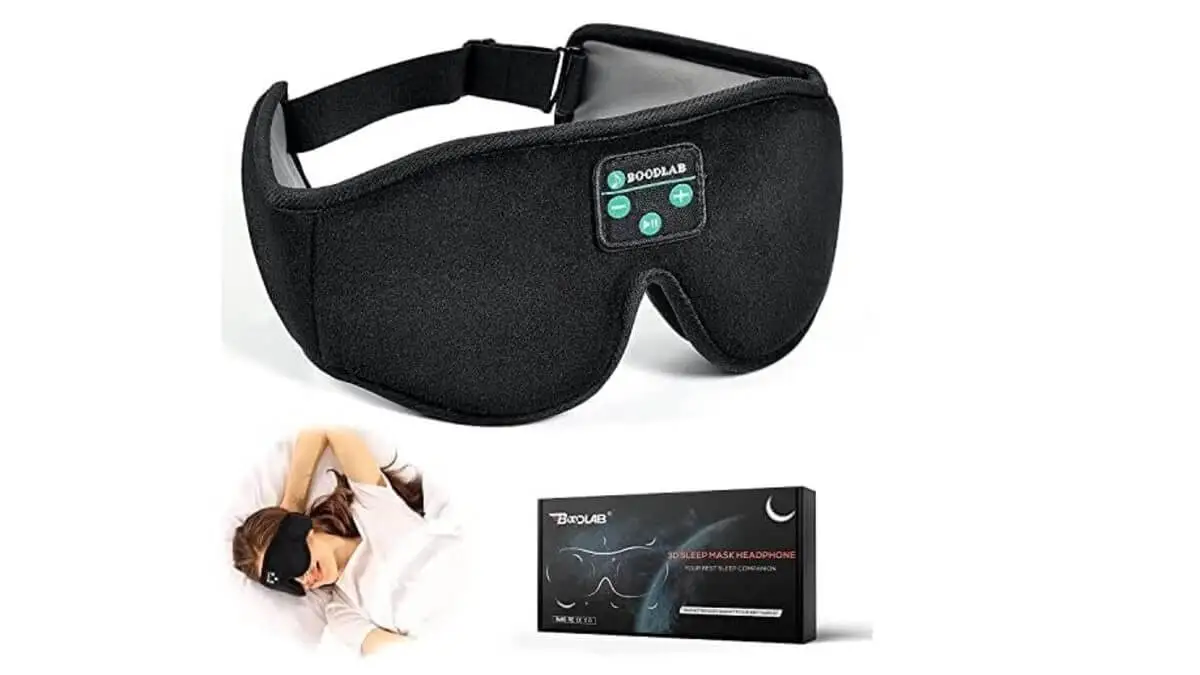 Si eres de los que escuchas ruido blanco o sonidos de la naturaleza para conciliar el sueño, te encantará este antifaz. Incluye auriculares Bluetooth, que se conectan a tu móvil o tablet y te permiten reproducir lo que quieras en ellos: desde un audiolibro hasta una melodía relajante.