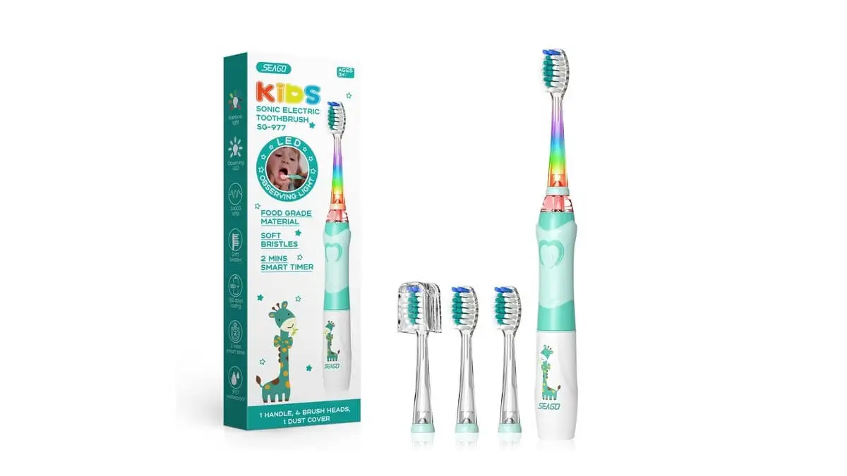 Con tecnología sónica que emite 24 000 vibraciones por minuto, proporciona una limpieza suave, pero eficaz; ideal para cuidar la delicada boca de los más pequeños. Funciona con una batería AAA y viene equipado con tres cabezales reemplazables extra suaves, diseñados para durar hasta nueve meses.