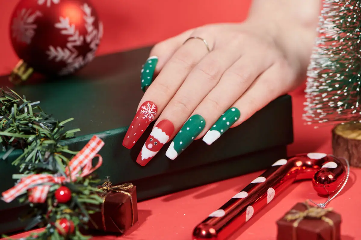 22. Uñas acrílicas XXL con diseño de Papá Noel