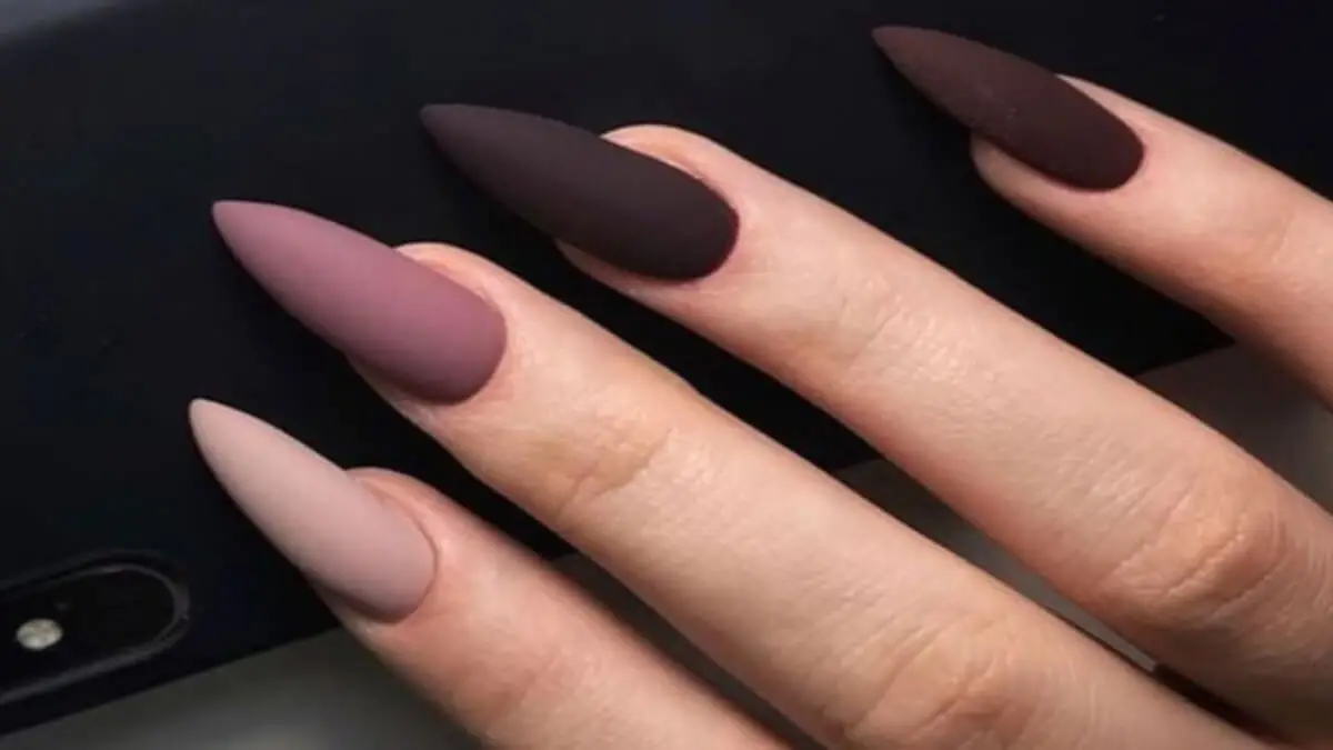 La paleta de colores que se asocia al otoño lleva tonos marrones (como el chai latte), nude y morados, siendo justo los que tienen estas uñas stiletto que te mostramos. Lo que más nos gusta de ellas es su acabado mate, que las hace más discretas y originales.