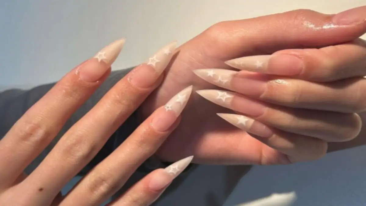 Las uñas nude se caracterizan por ser minimalistas y este diseño respeta eso, tan solo contando con pequeñas estrellas como decoraciones. Sin duda, son uñas stiletto en las que la forma se llevará todos los reflectores y elogios.