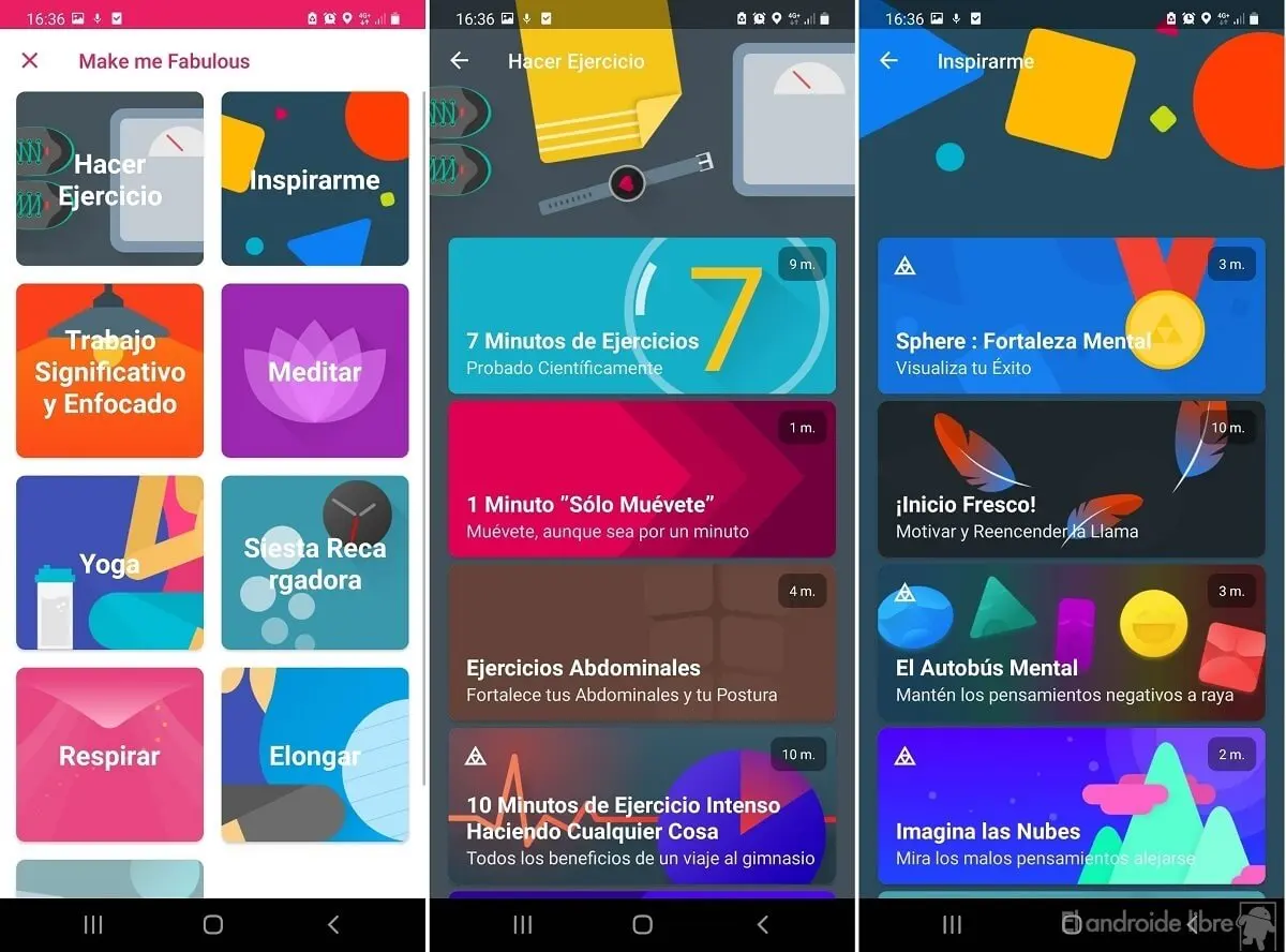 Esta app es altamente versátil al tiempo que motiva con colores brillantes y diseños vivos. Permite fijar objetivos y hacer un seguimiento de los mismos. Contiene herramientas para mejorar el sueño, hacer ejercicio y monitorizar tu concentración. Esta aplicación es gratuita, pero tiene algunas funciones de pago.