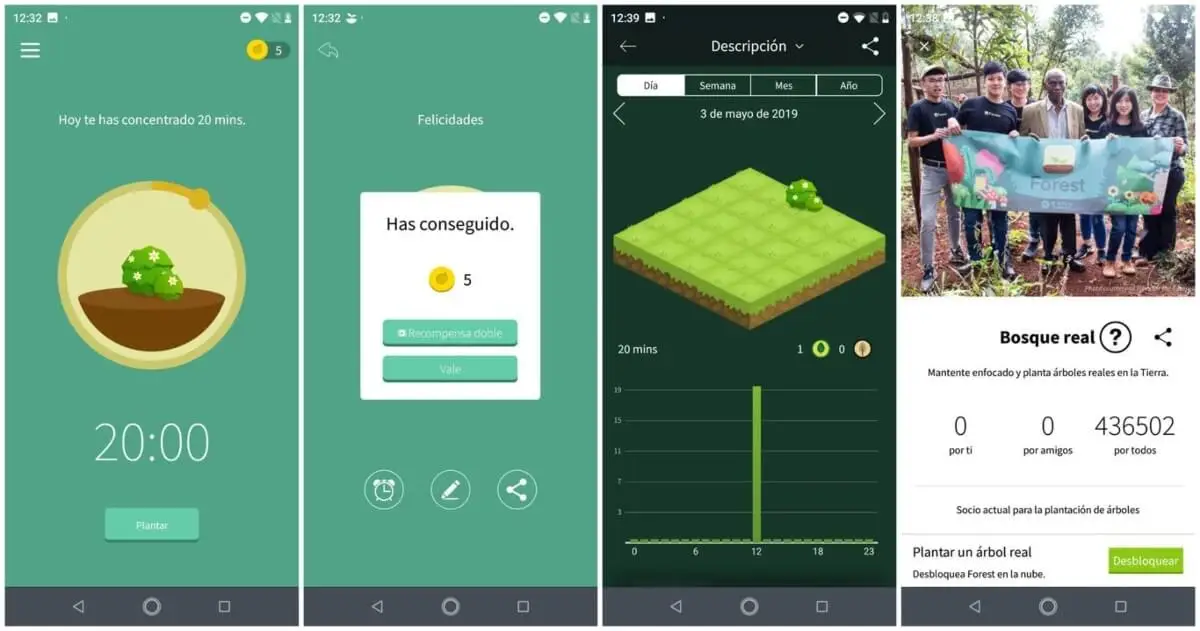 Esta aplicación es una de las más famosas por una peculiaridad: el premio por mantenerte concentrado es plantar un árbol real. Con ella, se activa un temporizador por un período determinado, durante el cual no se puede usar el dispositivo. En ese tiempo, un árbol va creciendo en la pantalla y se va creando un bosque ficticio a medida que se cumplen los objetivos.
