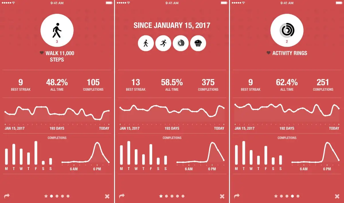 Esta app se basa en el sistema de cadenas, en el que se busca que el usuario marque casillas, durante varios días seguidos. Es útil para la creación de hábitos, porque permite mantener la motivación en los días siguientes, cuando más fuerza de voluntad se necesita.