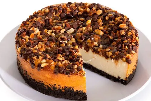 Cheesecake tortuga con caramelo, chocolate y nueces pacanas