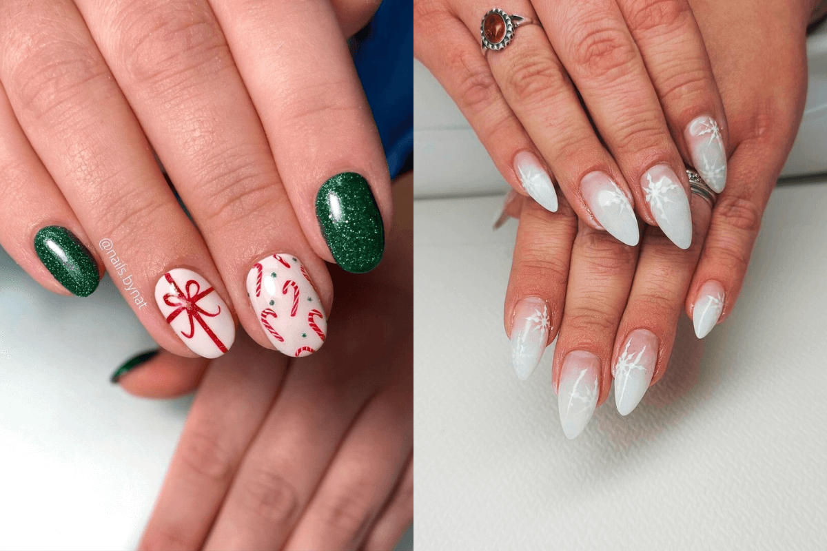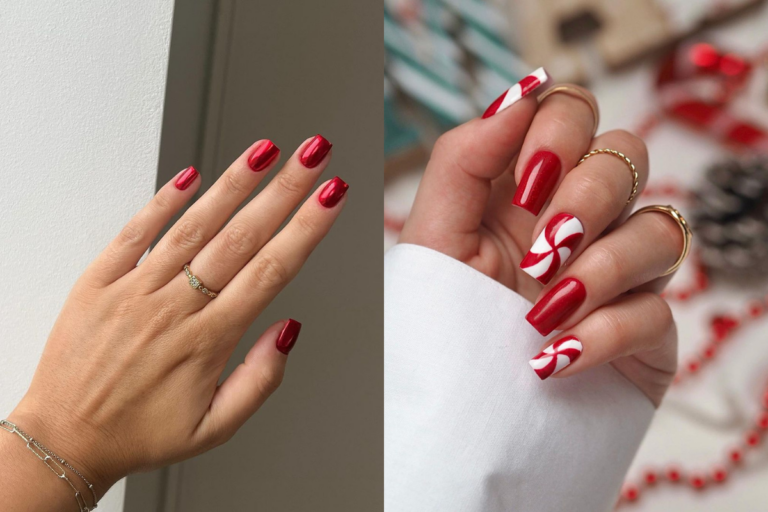 - Candy Cane: el caramelo blanco y rojo bien conocido por todos. Aplícalo como un francés en tus uñas, dibuja los bastones o colorea una capa blanca y otra roja para lograr este efecto.