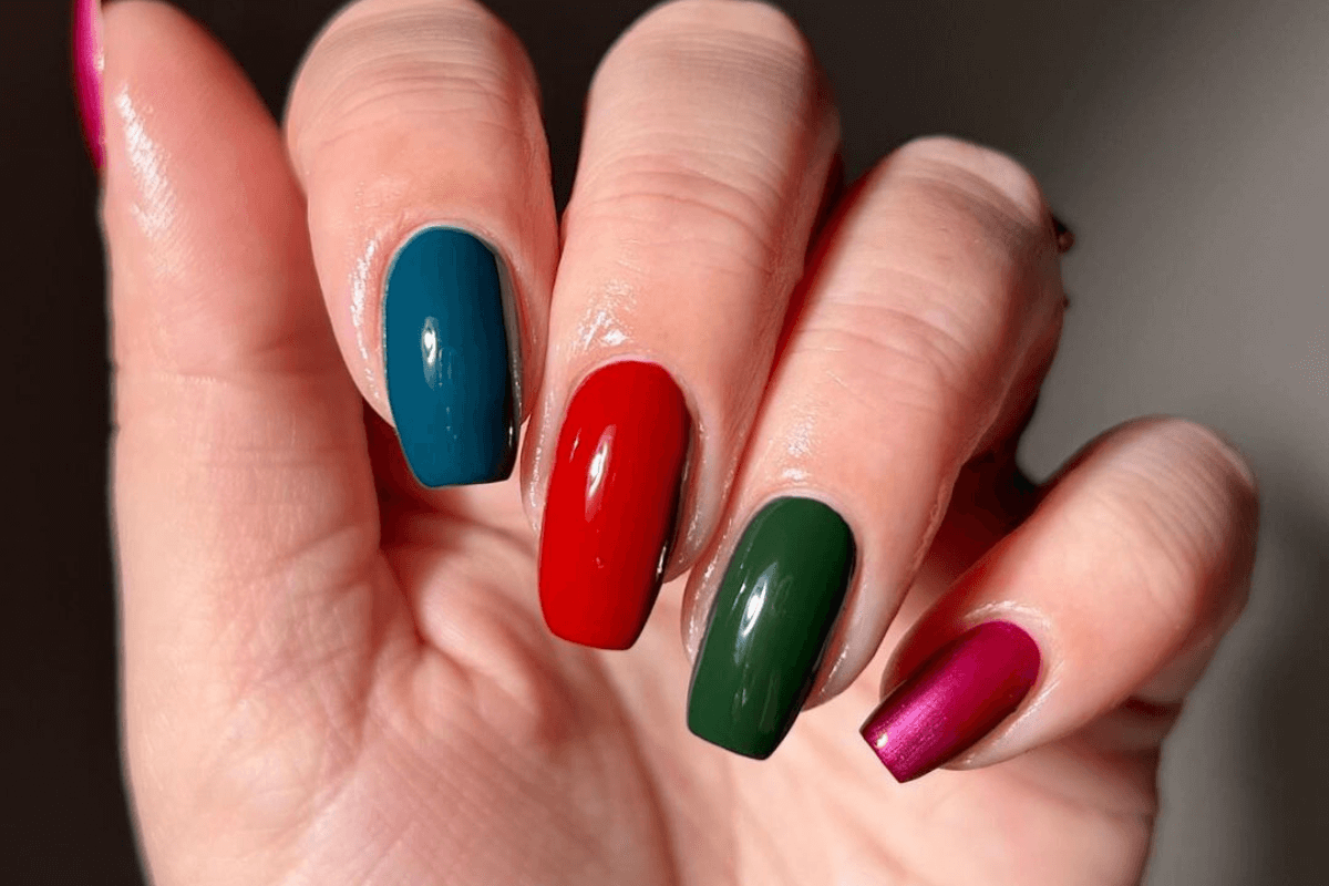 Si todavía no hallas una opción que te convenza al 100 %, en este listado de colores para uñas en Navidad, te motivamos a probar el diseño skittle, que consiste en pintar cada uña de tu mano de un color diferente, a fin de usarlos todos y crear algo divertido.