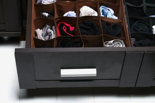No acumules todas las cosas juntas en los cajones y en los estantes. Usa divisiones para separarlas. Esto te permitirá aprovechar mejor el espacio y no acumular unas cosas encima de otras.