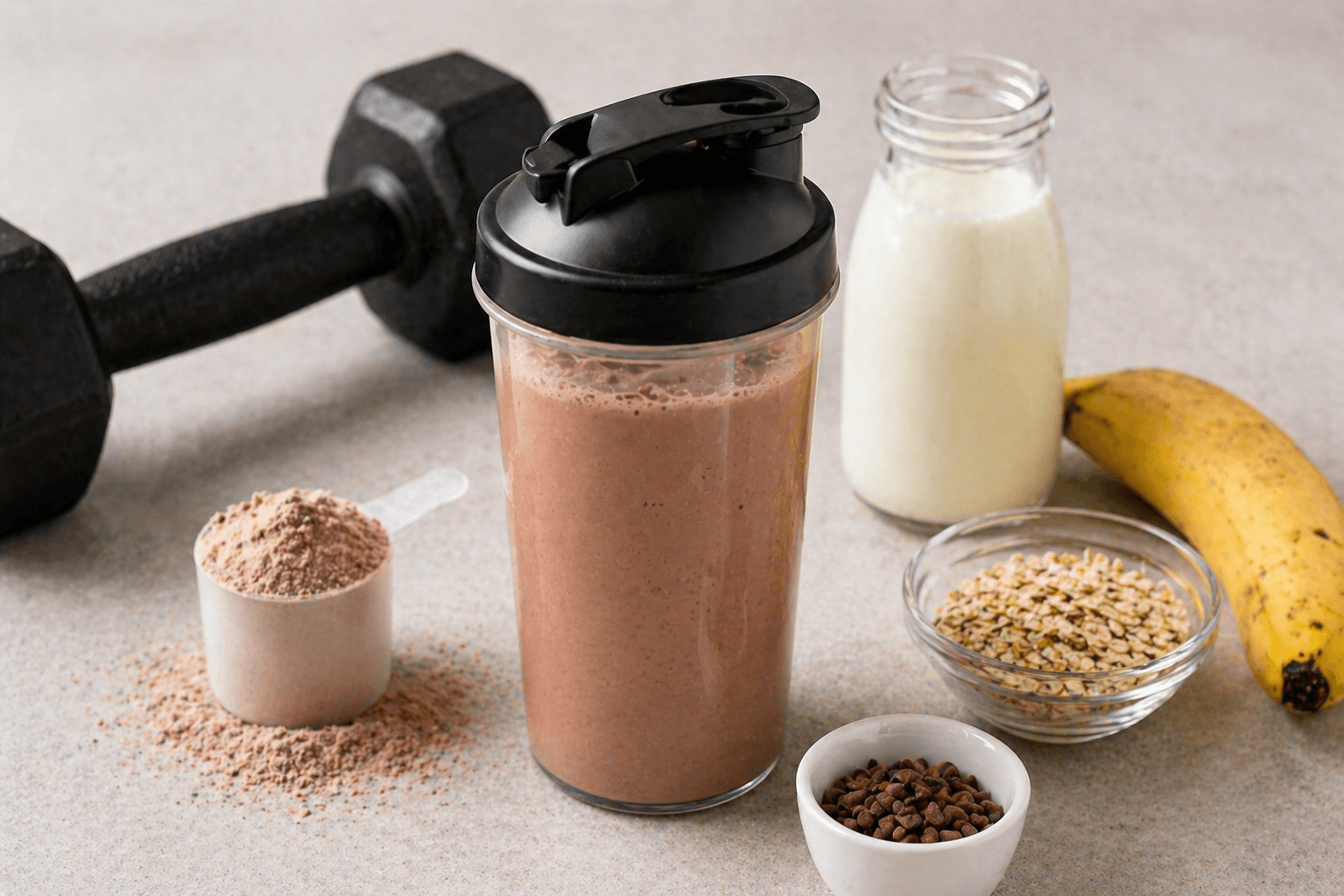 Un batido puede ser la mejor opción cuando no tienes tiempo o no te apetece masticar después de entrenar. Si lo haces con leche, ya tienes una base de proteína y carbohidratos; si añades proteína en polvo, aumentas ese aporte de forma más directa.