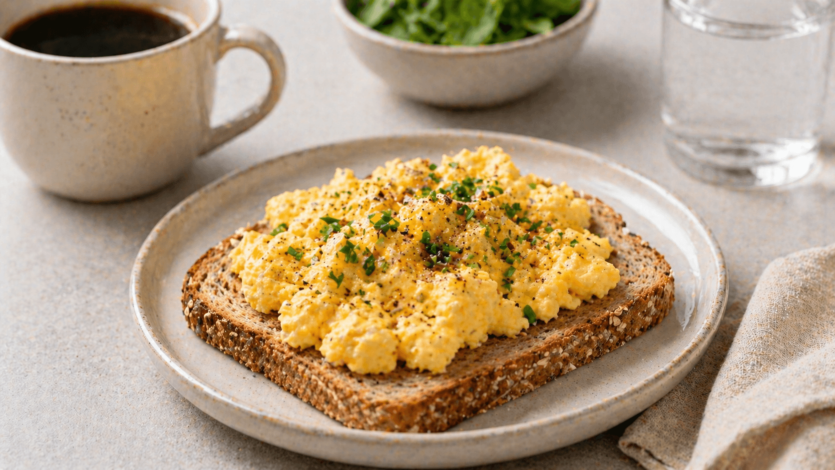 Los huevos son una fuente de proteína completa, y combinarlos con pan integral aporta la energía necesaria para la recuperación. Es una opción más salada y contundente, perfecta si tu entrenamiento coincide con horarios cercanos a una comida principal.