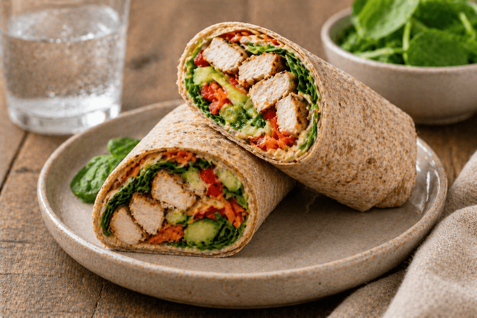 Si sales del entrenamiento con bastante apetito, un wrap puede ser una solución práctica. Combina proteína (pollo, atún o pavo) con carbohidratos del pan y, si quieres, algo de vegetales para sumar volumen y frescura.