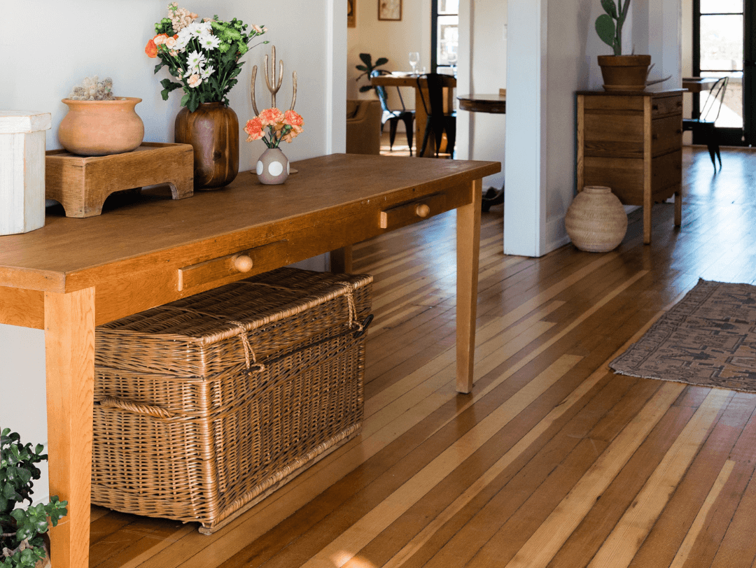 En la decoración de estilo campestre puedes decantarte por suelos de madera, lajas de piedra, baldosas de arcilla o incluso una combinación de estos materiales para lograr el ambiente rústico que deseas.