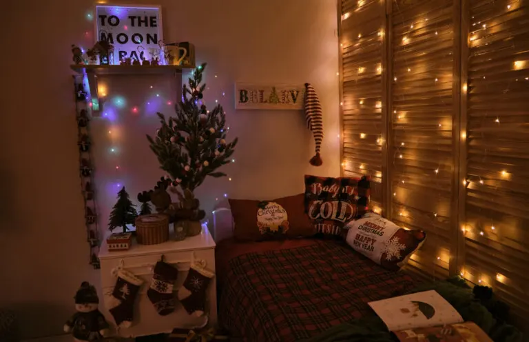Considera la incorporación de luces suaves entre las plantas para crear un ambiente cálido y relajante. Las luces LED con tonos cálidos son ideales para preservar la sensación acogedora del dormitorio durante las festividades.