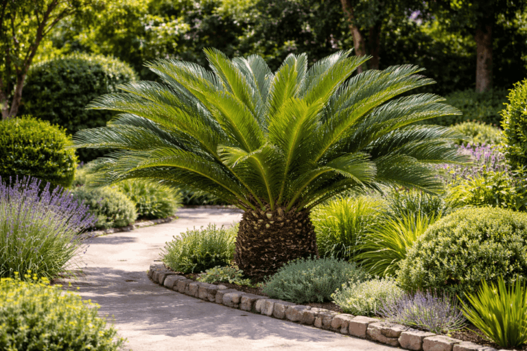 Su silueta recuerda a una palmera pequeña, con hojas arqueadas de color verde intenso que brotan desde un tronco central. Crece muy despacio, lo que la convierte en una inversión a largo plazo, y se adapta bien tanto a maceta grande como a suelo.