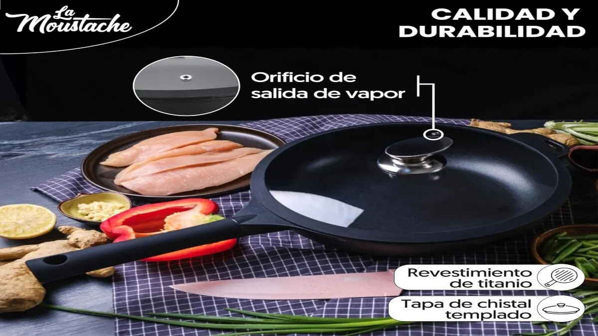 Eso sí, requiere de cierta técnica para su uso, la cual incluye un precalentamiento y utilizar un poco de aceite en la cocción, si no los alimentos se pegaran.