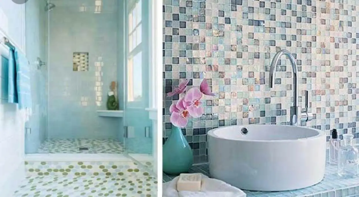 Se considera la opción más elegante y estética, incluso por encima de los azulejos de porcelana. Los azulejos de vidrio también dan una mayor sensación de amplitud, luminosidad y limpieza al baño.