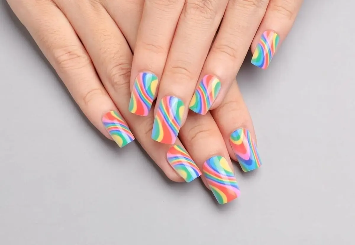 4. Un remolino con todos los colores: Uñas swir arco iris