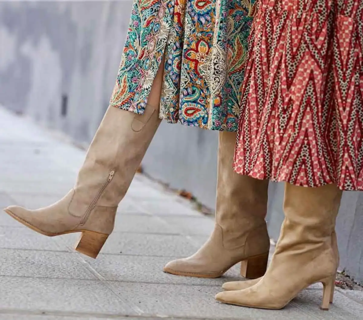 Para las amantes de las faldas hasta los pies, las botas altas son una gran elección. Elige un modelo de tela fluida o incluso de tela con stretch, para lograr una imagen estilizada y un estilo muy confortable.