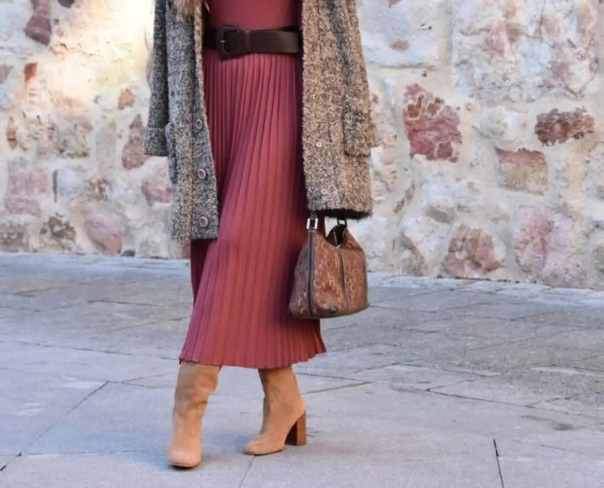 Este estilo es perfecto para paseos por la ciudad o encuentros informales. La sugerencia es que combines un vestido midi con estampados boho y unas botas altas de ante. Completa el conjunto con un sombrero de ala ancha y una chaqueta al tono para mantener el calor.