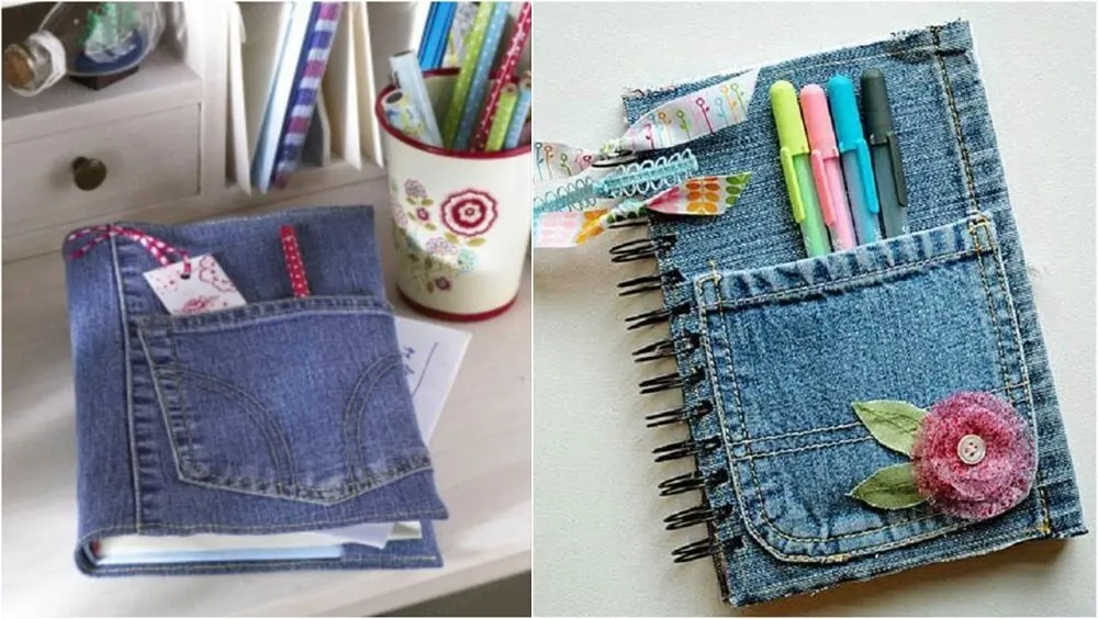 Los vaqueros tienen un estilo moderno y juvenil que se puede aprovechar para crear bonitas libretas personalizadas. Lo único que tendrás que hacer es cortarlos del tamaño adecuado y, en seguida, fijar la tela con un pegamento fino.