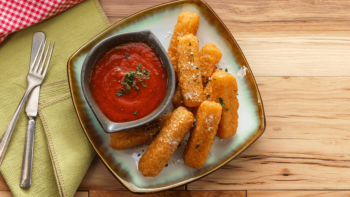 - Acompaña los palitos de mozzarella con una variedad de salsas, como el pesto a base de albahaca, aceite de oliva, parmesano y piñones; y una salsa de tomate tradicional, con tomates pelados, aceite de oliva, ajo, cebolla picada en brunoise y hierbas. ¡Italianísimo!