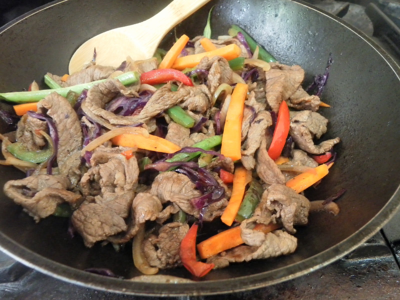 - Saltea aparte las verduras, todo cortado en juliana (la zanahoria también pelada).