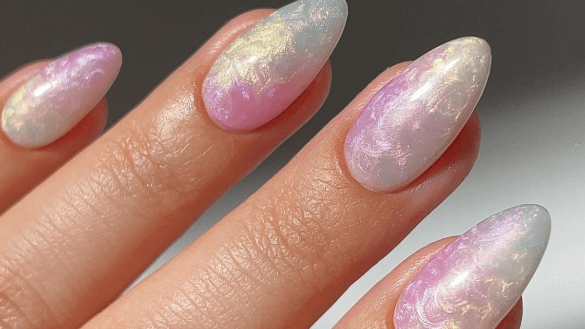 Puedes conseguir dos tendencias en una con esta manicura: pearl y aura nails. Esta propuesta moderna y romántica es perfecta tanto para looks de día como de noche, y añade el toque de color ideal para resaltar tus uñas.