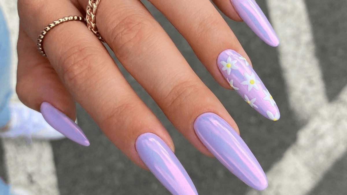 Esta opción es ideal si buscas una manicura femenina con un tono que no sea muy escandaloso. Además, si te agrada añadir diseños, podrías complementarla con unas delicadas margaritas, como se muestra en la imagen de referencia. Este estilo añade un toque de frescura y delicadeza a tus uñas perladas, una elección perfecta para la primavera y el verano.